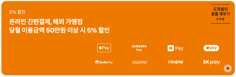 - 5% 할인 : 월 1만원(온라인 간편결제서비스, 해외 가맹점 통합)