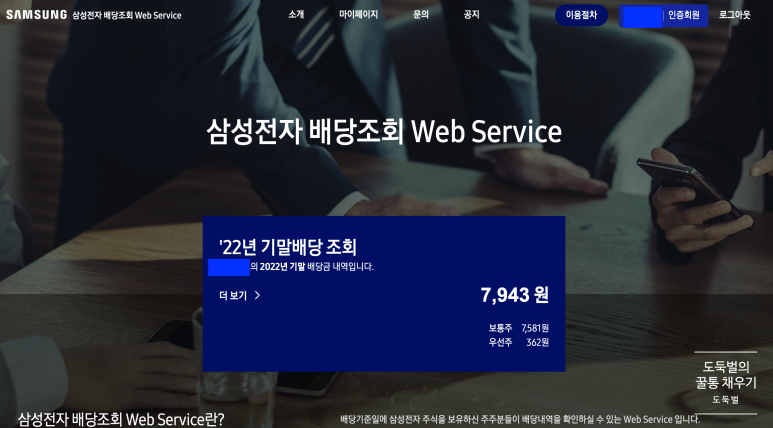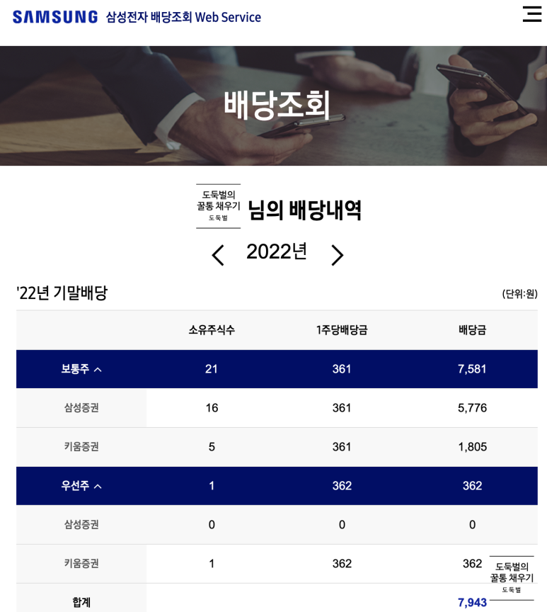 삼성전자 2022 기말배당금 조회하는 방법을 알아보자.