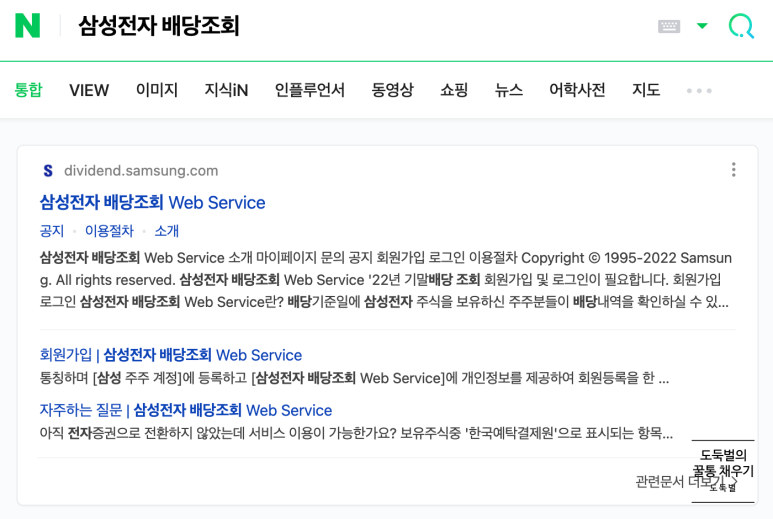 일단 네이버에 삼성전자 배당조회를 검색하자.