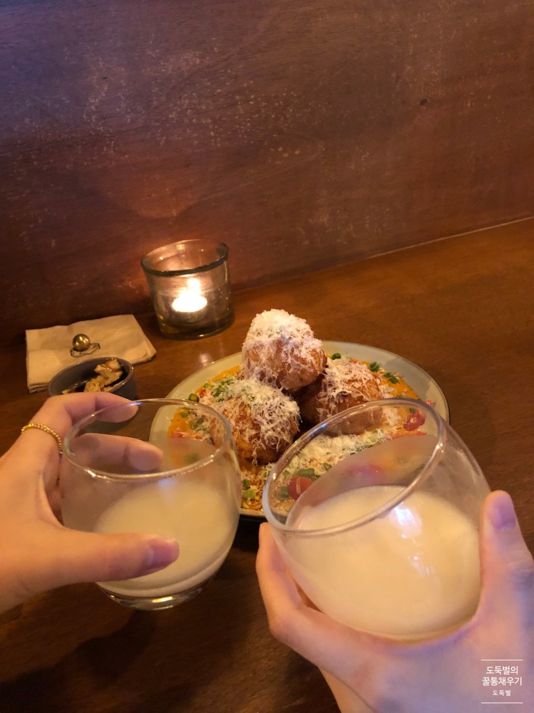2인 자리는 음식 두세개 + 술 ㅎ 두다보면 생각보다 작아서 개인적으로 바 자리를 선호한다.